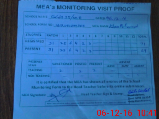 | Certified that this School was Inspected by the Undersigned MEA/DMO Today and the Information Stated Above is as Per Record. | |||||