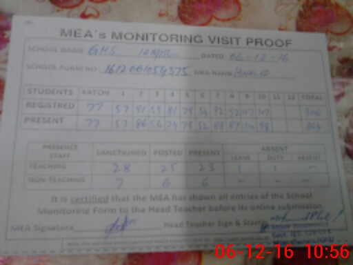 | Attendance Register | Head Teacher | MEA with School | Visit Proof |