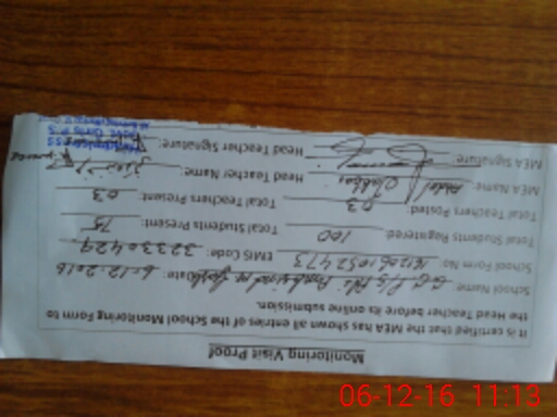 | Attendance Register | Head Teacher | MEA with School | Visit Proof |