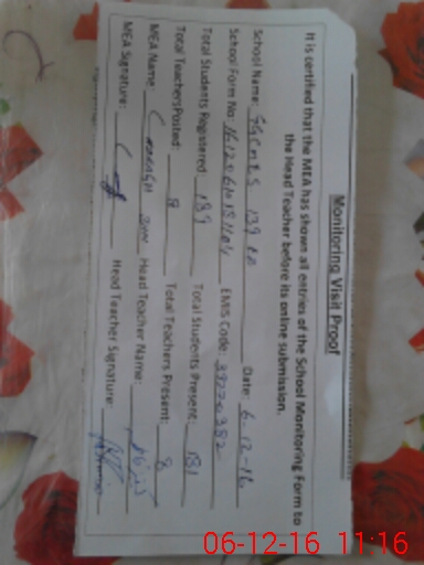 | Certified that this School was Inspected by the Undersigned MEA/DMO Today and the Information Stated Above is as Per Record. | |||||
