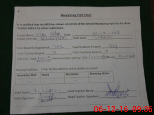 | Certified that this School was Inspected by the Undersigned MEA/DMO Today and the Information Stated Above is as Per Record. | |||||