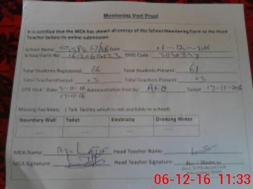 | EMIS Code: 31140347 | Name of School: GGPS CHAK NO 67/4-R | |||