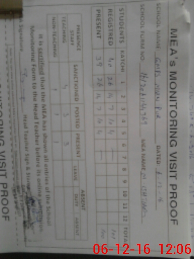 | Attendance Register | Head Teacher | MEA with School | Visit Proof |