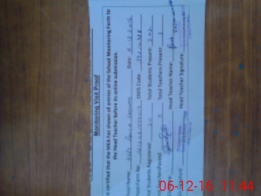 | Attendance Register | Head Teacher | MEA with School | Visit Proof |