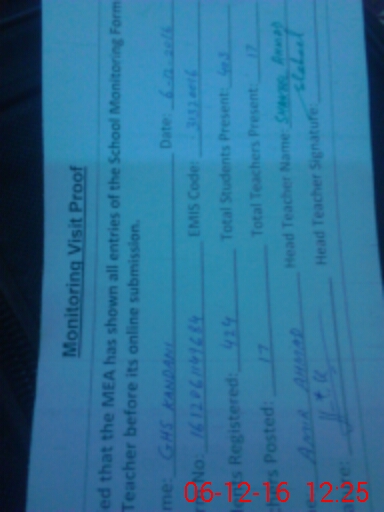 | Attendance Register | Head Teacher | MEA with School | Visit Proof |