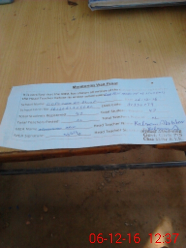 | Attendance Register | Head Teacher | MEA with School | Visit Proof |