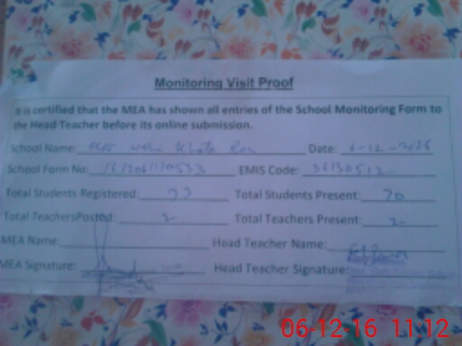 | Certified that this School was Inspected by the Undersigned MEA/DMO Today and the Information Stated Above is as Per Record. | |||||