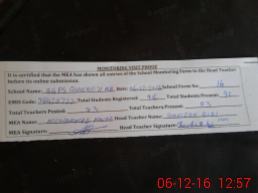 | Attendance Register | Head Teacher | MEA with School | Visit Proof |
