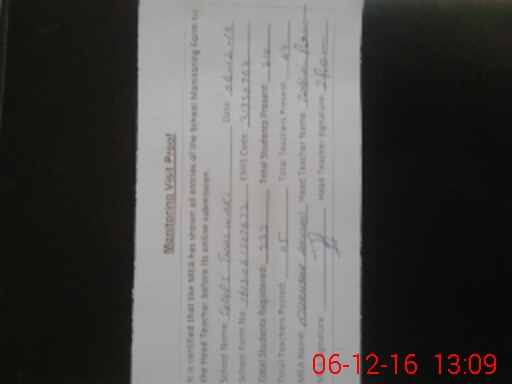 | Attendance Register | Head Teacher | MEA with School | Visit Proof |