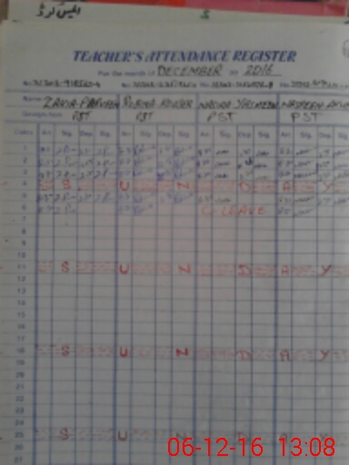 | CNIC | Full Name | Designation | R/C | Absence During Last Calender Month |