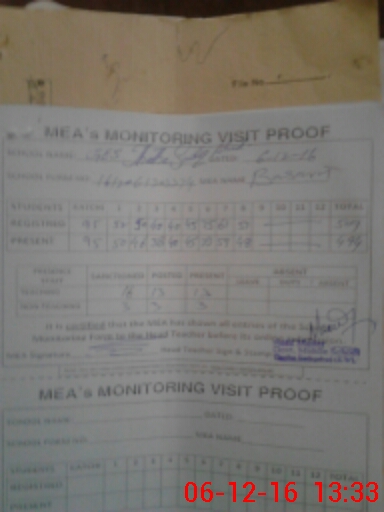 | Attendance Register | Head Teacher | MEA with School | Visit Proof |