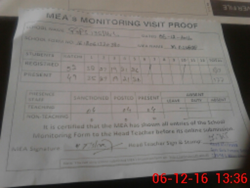 | Attendance Register | Head Teacher | MEA with School | Visit Proof |