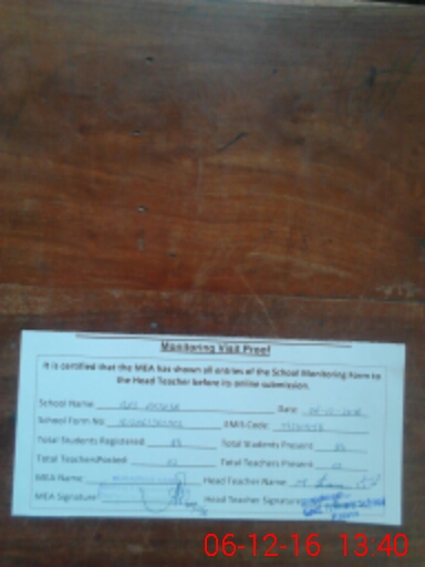 | Certified that this School was Inspected by the Undersigned MEA/DMO Today and the Information Stated Above is as Per Record. | |||||