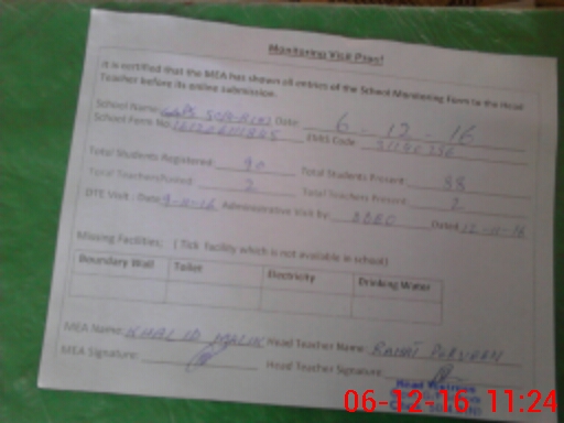 | Certified that this School was Inspected by the Undersigned MEA/DMO Today and the Information Stated Above is as Per Record. | |||||