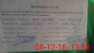 | Attendance Register | Head Teacher | MEA with School | Visit Proof |