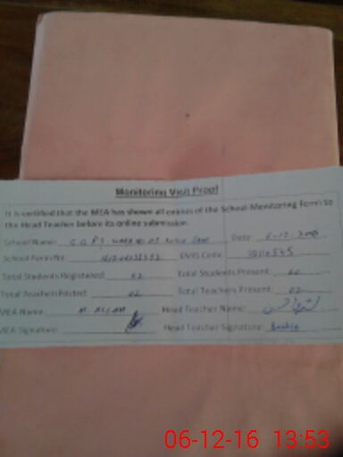 | Attendance Register | Head Teacher | MEA with School | Visit Proof |
