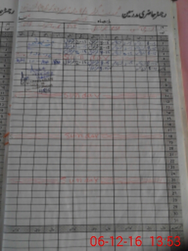 | CNIC | Full Name | Designation | R/C | Absence During Last Calender Month |