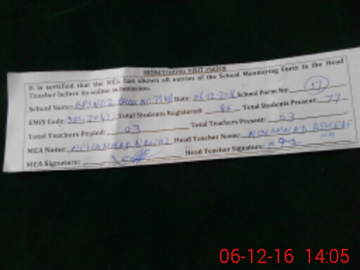 | Attendance Register | Head Teacher | MEA with School | Visit Proof |