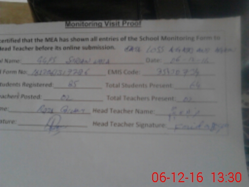 | Certified that this School was Inspected by the Undersigned MEA/DMO Today and the Information Stated Above is as Per Record. | |||||