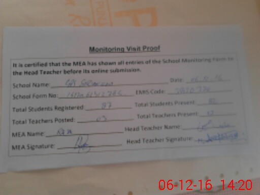| Attendance Register | Head Teacher | MEA with School | Visit Proof |