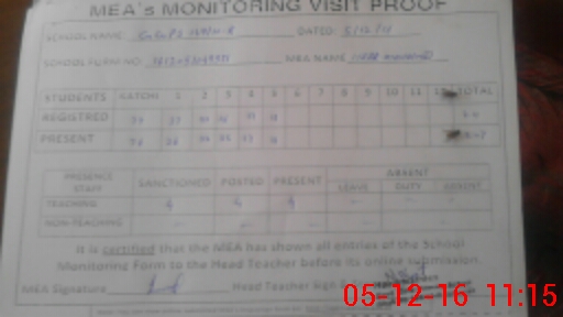 | Attendance Register | Head Teacher | MEA with School | Visit Proof |