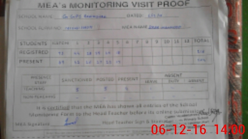 | Attendance Register | Head Teacher | MEA with School | Visit Proof |