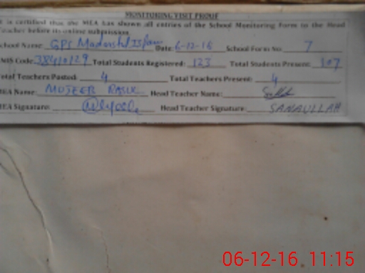 | EMIS Code: 38410129 | Name of School: GPS MADRISA TUL ISLAMIA AL-FAZAL TOWN BHALWAL | |||