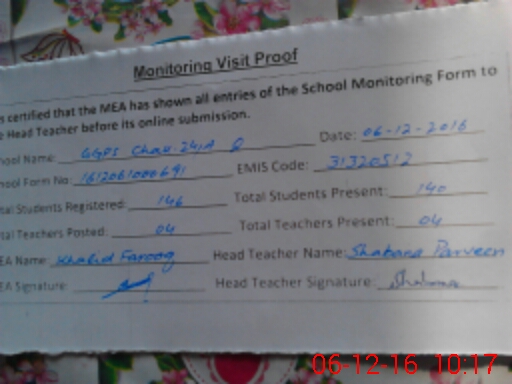 | Certified that this School was Inspected by the Undersigned MEA/DMO Today and the Information Stated Above is as Per Record. | |||||