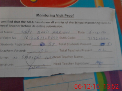 | EMIS Code: 31320440 | Name of School: GGPS BASTI ARAIN | |||