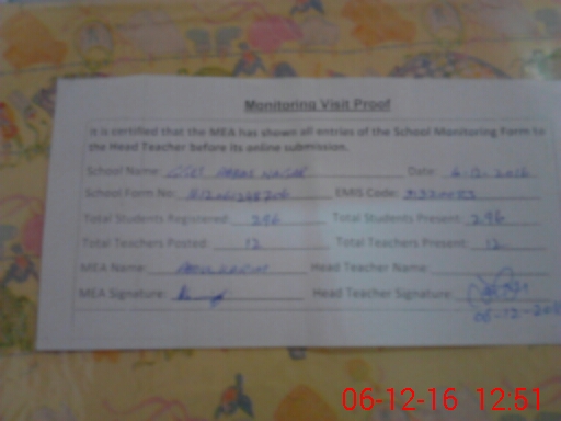 | Certified that this School was Inspected by the Undersigned MEA/DMO Today and the Information Stated Above is as Per Record. | |||||