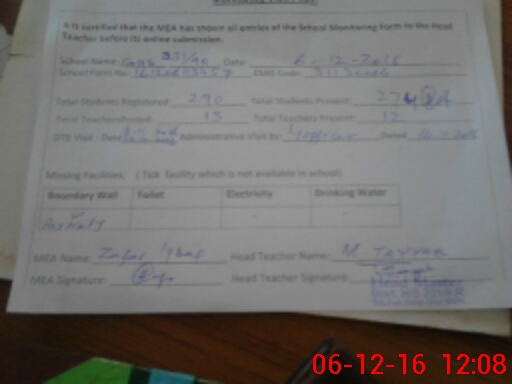 | EMIS Code: 31130004 | Name of School: GHS CHAK 231/9-R | |||