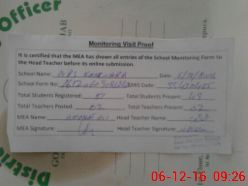| Certified that this School was Inspected by the Undersigned MEA/DMO Today and the Information Stated Above is as Per Record. | |||||