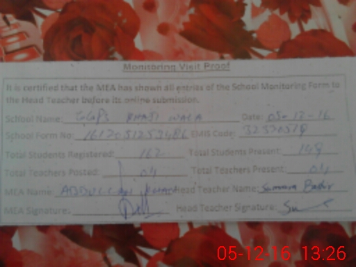 | Certified that this School was Inspected by the Undersigned MEA/DMO Today and the Information Stated Above is as Per Record. | |||||