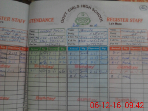 | CNIC | Full Name | Designation | R/C | Absence During Last Calender Month |