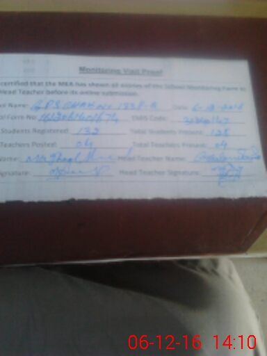 | Attendance Register | Head Teacher | MEA with School | Visit Proof |