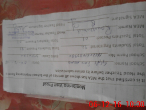 | Certified that this School was Inspected by the Undersigned MEA/DMO Today and the Information Stated Above is as Per Record. | |||||