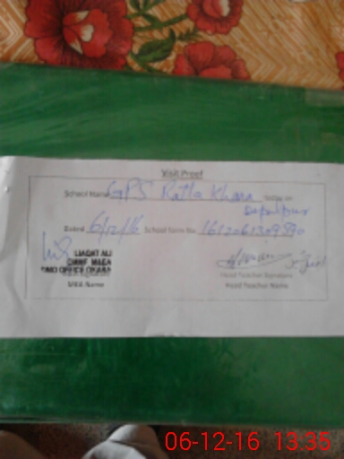 | School Visited by School Health & Nutrition Supervisor (No. of Visits) | 2 | Name1: | Muhammad Shakeel | Name2: | Muhammad Shakeek |