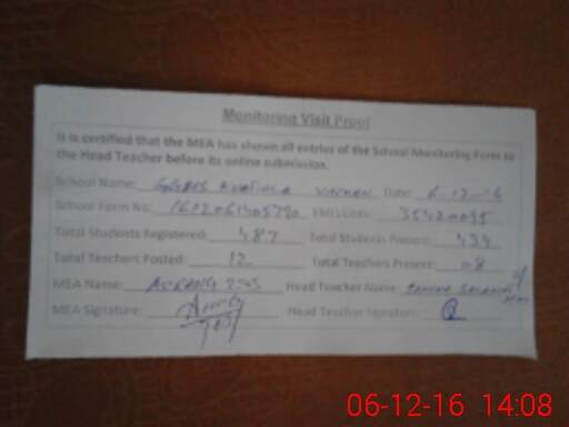 | Attendance Register | Head Teacher | MEA with School | Visit Proof |
