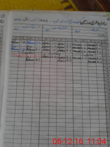 | CNIC | Full Name | Designation | R/C | Absence During Last Calender Month |