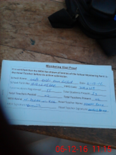 | Attendance Register | Head Teacher | MEA with School | Visit Proof |
