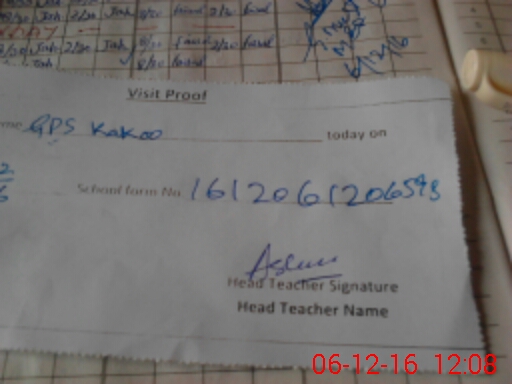 | Attendance Register | Head Teacher | MEA with School | Visit Proof |