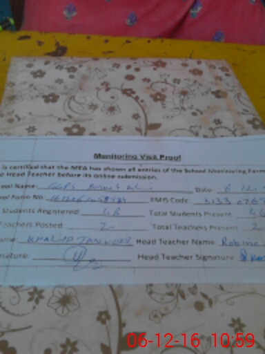 | Certified that this School was Inspected by the Undersigned MEA/DMO Today and the Information Stated Above is as Per Record. | |||||