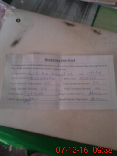 | Monitoring Date: 07-12-2016 | Start Time: 07-12-2016 09:05 AM | End Time: 07-12-2016 09:39 AM | Name of MEA: Sa**** Hu**** | |
