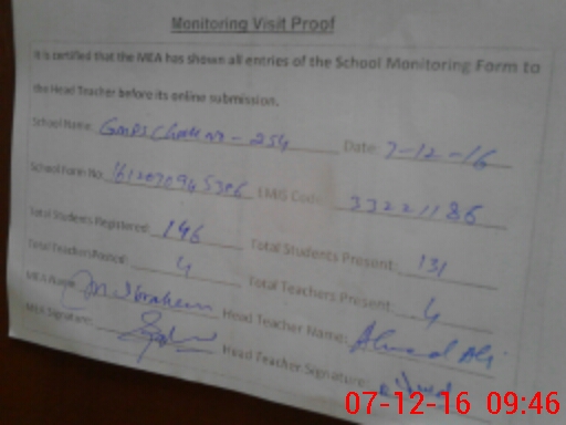 | Attendance Register | Head Teacher | MEA with School | Visit Proof |