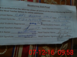 | Attendance Register | Head Teacher | MEA with School | Visit Proof |