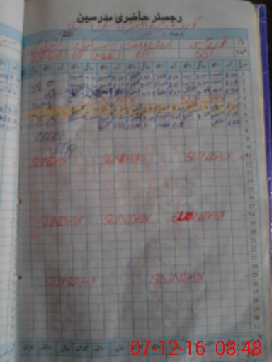 | CNIC | Full Name | Designation | R/C | Absence During Last Calender Month |