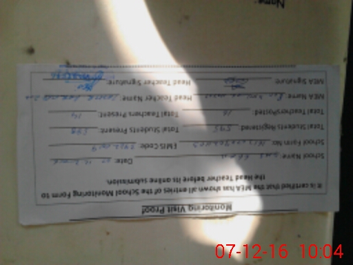 | Attendance Register | Head Teacher | MEA with School | Visit Proof |