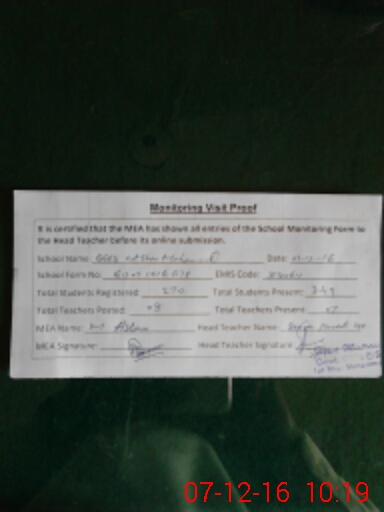 | Attendance Register | Head Teacher | MEA with School | Visit Proof |