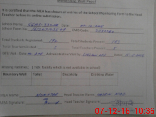 | Certified that this School was Inspected by the Undersigned MEA/DMO Today and the Information Stated Above is as Per Record. | |||||