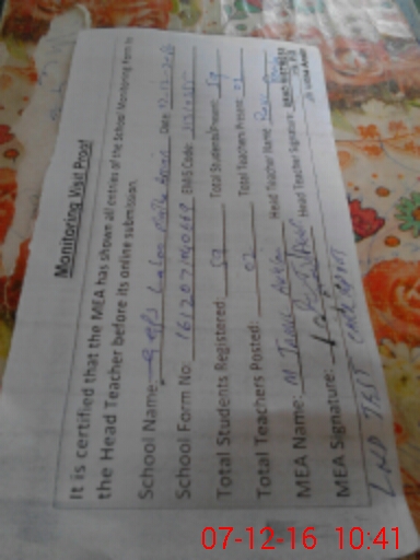 | Certified that this School was Inspected by the Undersigned MEA/DMO Today and the Information Stated Above is as Per Record. | |||||